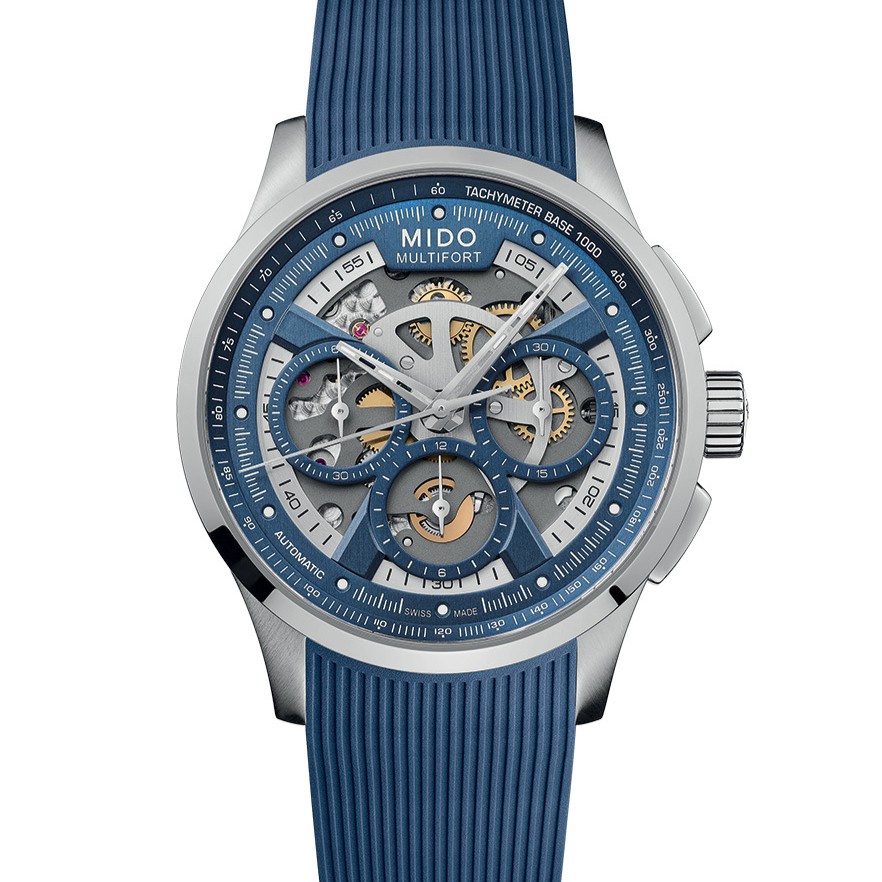 Der Multifort Skeleton Chronograph vereint Einzigartigkeit, Spitzentechnologie und außergewöhnlicher Handwerkskunst. Dieses anspruchsvolle und präzise Schweizer Automatikwerk ist das Herz dieser Sportuhr mit fortschrittlicher Chronographenfunktion. Das Skelettzifferblatt mit seinen sorgfältig gefertigten Zeigern offenbart die mechanische Komplexität der Uhr und gewährleistet gleichzeitig optimale Lesbarkeit durch Saphirglas, das auf beiden Seiten mit einer Antireflexbeschichtung versehen ist. Der transparente Gehäuseboden zeigt die Schönheit des automatischen Skelett-Chronographen Kaliber 60 A05.951, der erstmals von MIDO entwickelt und lanciert wurde.